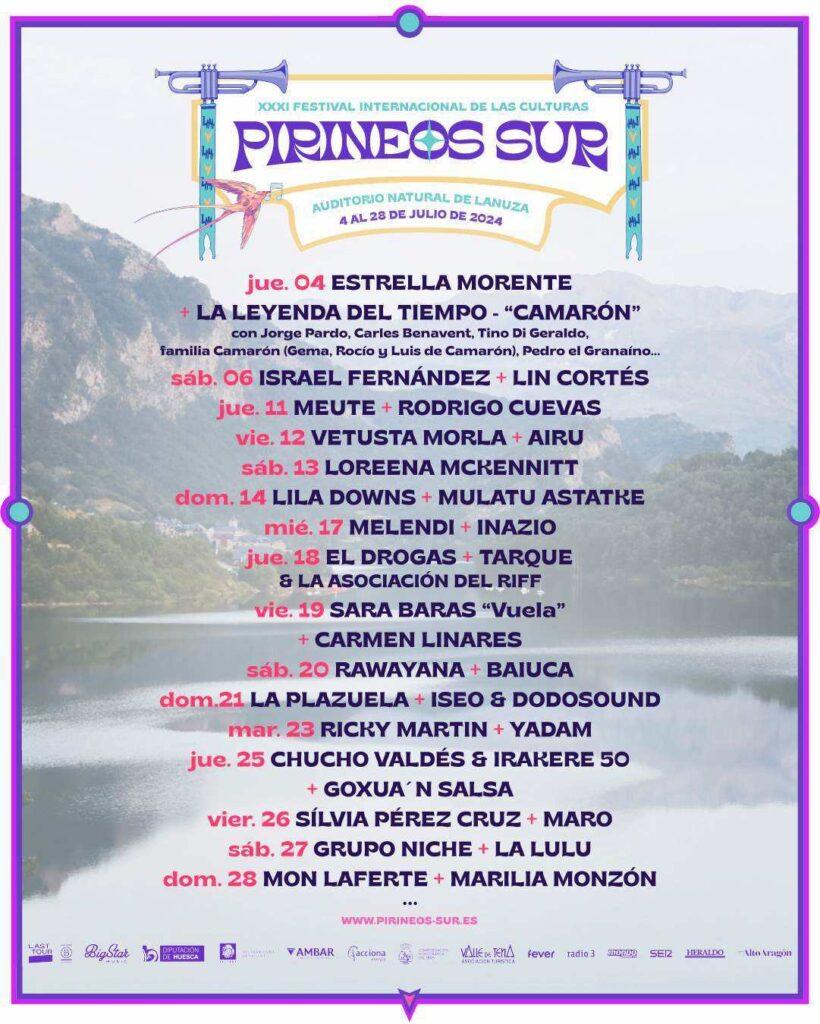 Tras el esperado avance de hace unas semanas, con la estrella internacional Ricky Martin entre los primeros nombres, Pirineos Sur añade ahora al cartel una variada selección de artistas que transitan entre diferentes géneros y puntos geográficos. Para reforzar su esencia de caleidoscopio musical, la 31 edición del festival, que se celebrará entre el 4 y 28 de julio, contará con el homenaje a Camarón “La Leyenda del Tiempo”, Melendi, Israel Fernández, El Drogas, Estrella Morente, Chucho Valdés & Irakere 50, Tarque & La Asociación del Riff, Lin Cortés, Yadam y Goxua’n Salsa.