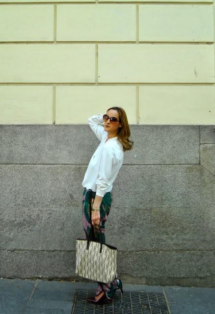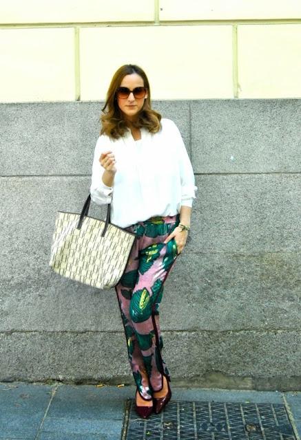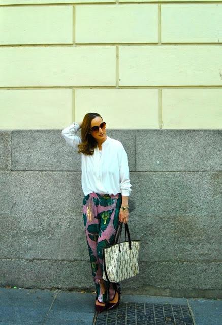 Como os digo ha sido una semana frenética y todavía no me ha dado tiempo a pasarme. No será porque no me hayan puesto los dientes largos tiene súper buena pinta el lunes seguro que os lo cuento por aquí. Otro de los planes del finde por si alguien necesita ideas es ir a Casa Decor. Este año tampoco me lo pienso perder ya que otra de mis pasiones es la decoración. Para los más boho chics tenéis el Mercado de Motores. Un sin fin de planes que con este tiempo es un gusto salir a la calle. Me centro en el look que si no como siempre me voy por las ramas. La primera vez que vi estos pantalones pensé que si no había mi talla me iba a Dubai si hacía falta a comprarlos. Sé que no a todo el mundo pueden gustar porque me parece que tienen los dos extremos. O te apasionan o te parecen horribles. A mí comprenderéis que me volvieron loca. Los hay también en caftán, son de la colección H&M Studio y solamente están en algunas tiendas seleccionadas. Estos los compré hace un mes en el de la Calle Velázquez. La camisa es de Mango, los zapatos de Zara, el bolso de Carolina Herrera y las ganas que tengo en la cara ¡son de viernes! Mil besos en el corazón. Hasta el lunes.