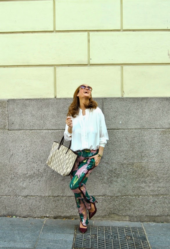 Como os digo ha sido una semana frenética y todavía no me ha dado tiempo a pasarme. No será porque no me hayan puesto los dientes largos tiene súper buena pinta el lunes seguro que os lo cuento por aquí. Otro de los planes del finde por si alguien necesita ideas es ir a Casa Decor. Este año tampoco me lo pienso perder ya que otra de mis pasiones es la decoración. Para los más boho chics tenéis el Mercado de Motores. Un sin fin de planes que con este tiempo es un gusto salir a la calle. Me centro en el look que si no como siempre me voy por las ramas. La primera vez que vi estos pantalones pensé que si no había mi talla me iba a Dubai si hacía falta a comprarlos. Sé que no a todo el mundo pueden gustar porque me parece que tienen los dos extremos. O te apasionan o te parecen horribles. A mí comprenderéis que me volvieron loca. Los hay también en caftán, son de la colección H&M Studio y solamente están en algunas tiendas seleccionadas. Estos los compré hace un mes en el de la Calle Velázquez. La camisa es de Mango, los zapatos de Zara, el bolso de Carolina Herrera y las ganas que tengo en la cara ¡son de viernes! Mil besos en el corazón. Hasta el lunes.