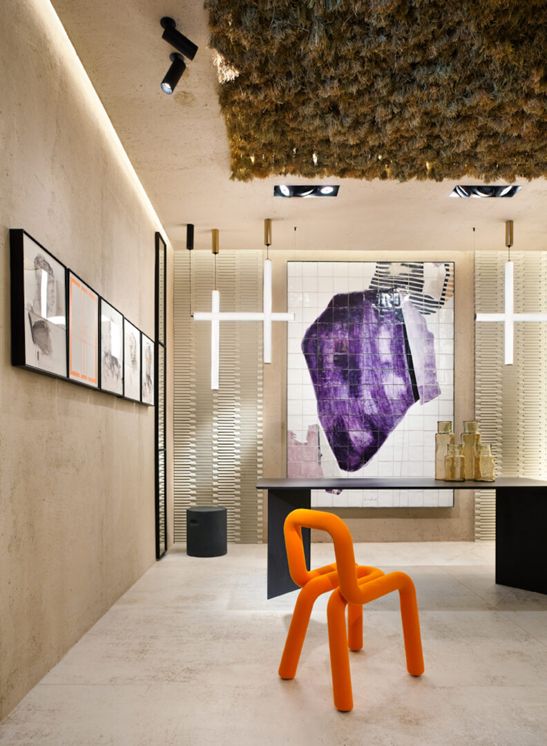 Especialmente destacable ha sido la aplicación manual de estos materiales in situ, al igual que los murales, trampantojos y otras técnicas realizadas directamente en la pared por un buen número de interioristas y artistas participantes. Las propuestas de los 57 espacios sorprenden por su diversidad, tanto en la estética como en el concepto del proyecto. Así, descubrimos espacios sumamente modernos y actuales, pero con un punto nostálgico sesentero, que nos transporta a escenarios retrofuturistas ubicados en un desierto o en una nave espacial.
