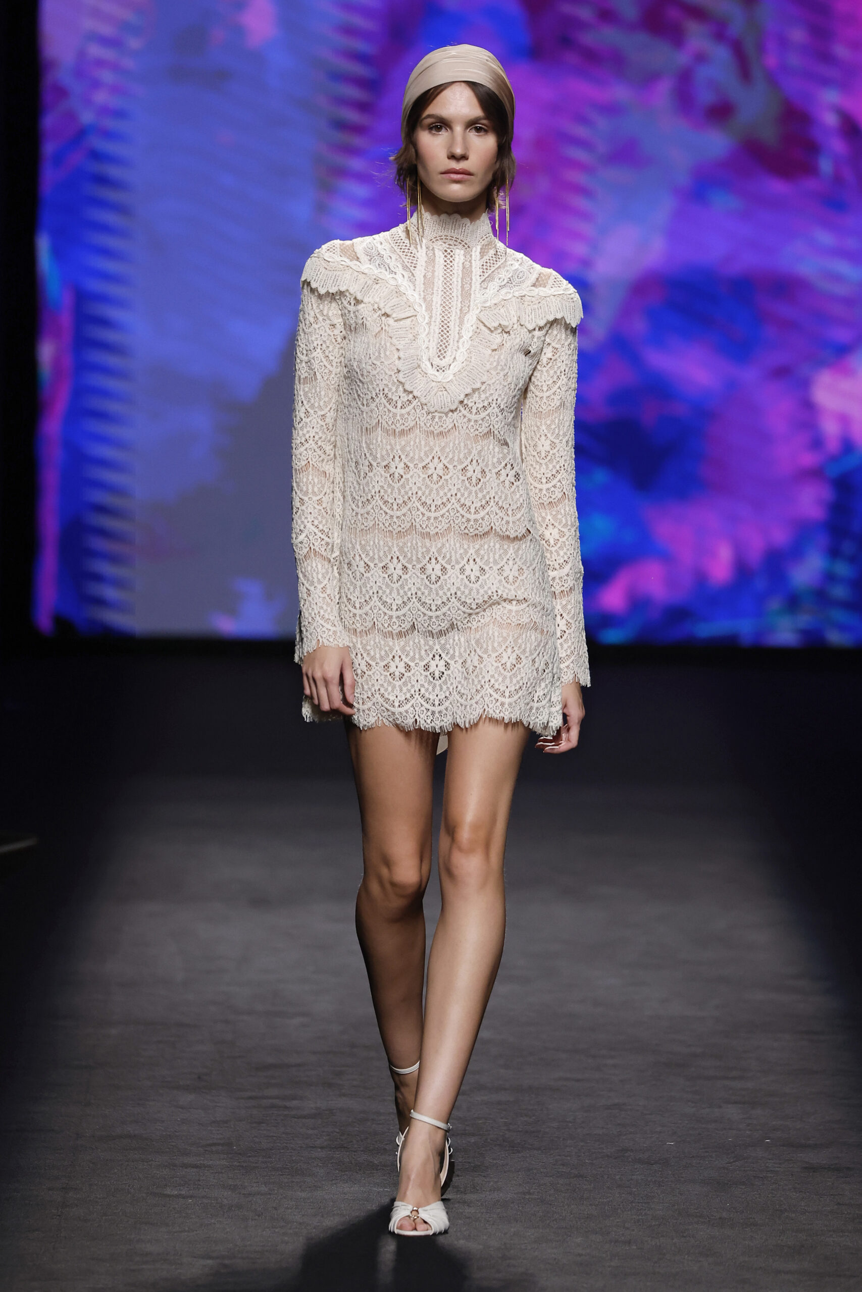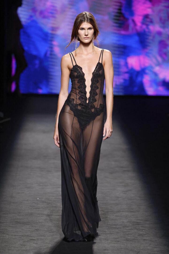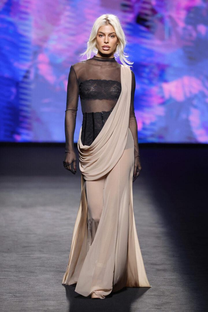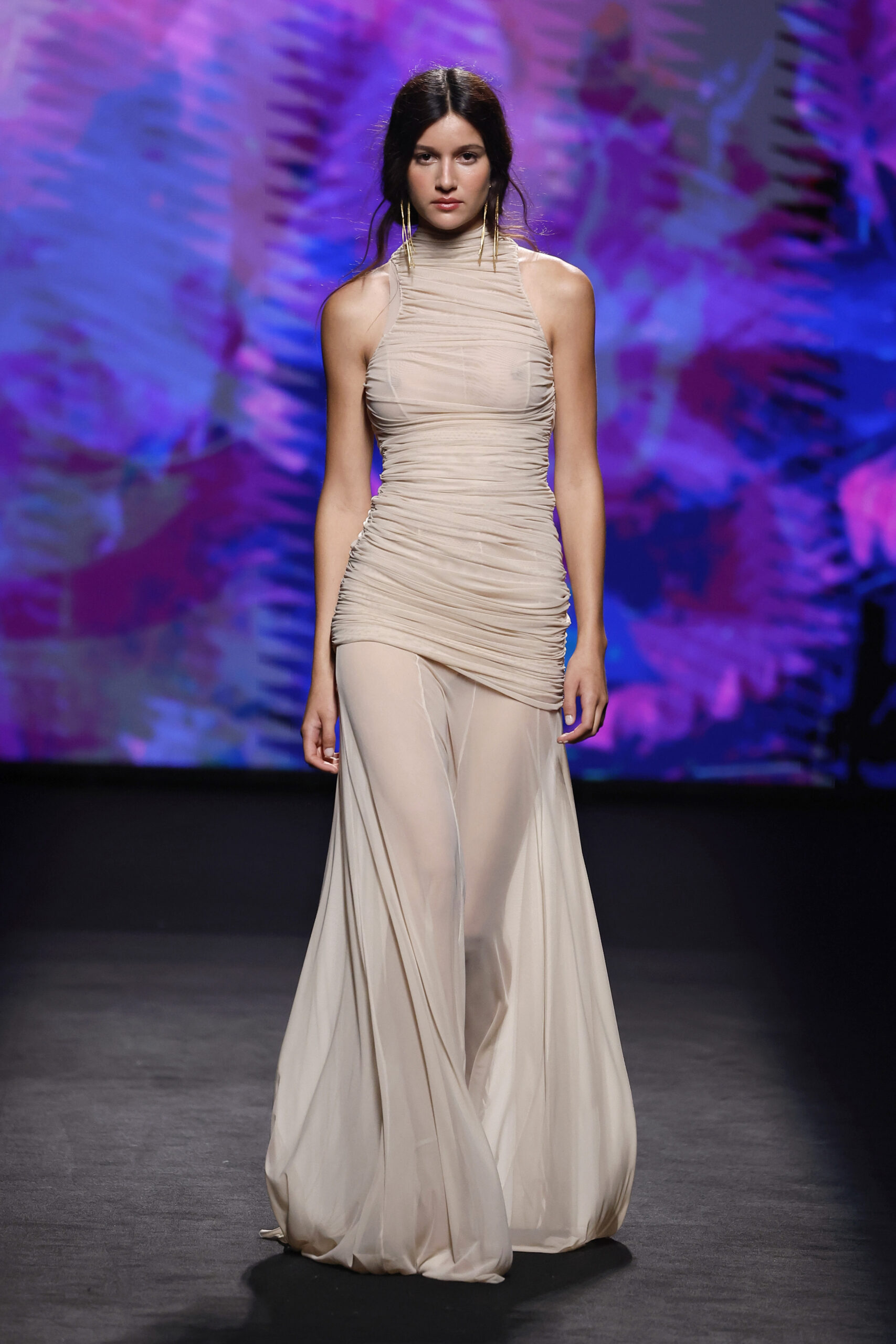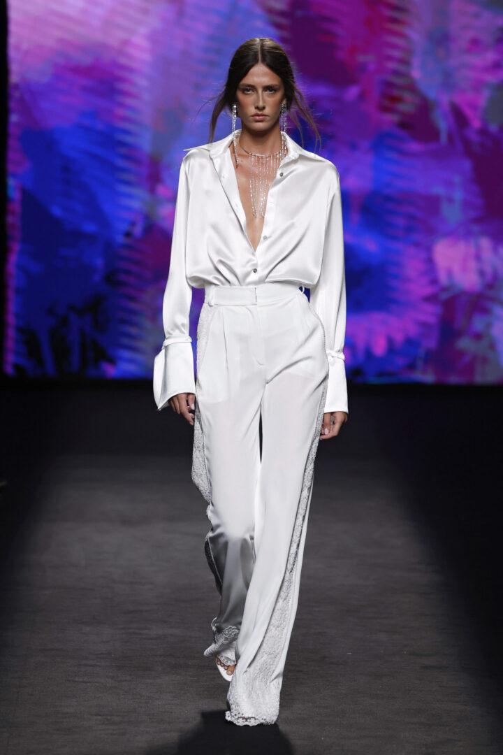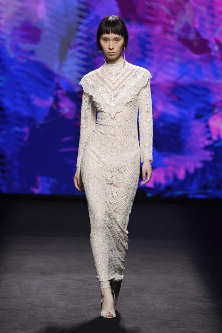 Claro Couture ha desfilado en el primer día de Madrid Fashion Week en su 80 edición. Ha sido el último en hacerlo y ha recibido los mayores aplausos del día. Los encajes delicados, las transparencias estratégicas y los corsés ajustados realzan la silueta femenina, mientras que la superposición de tejidos fluidos y lujosos, como gasas y tules de seda, aportan profundidad y movimiento a cada diseño. Combinado con labores artesanales, pedrería o lazos que evocan una estética coquette.