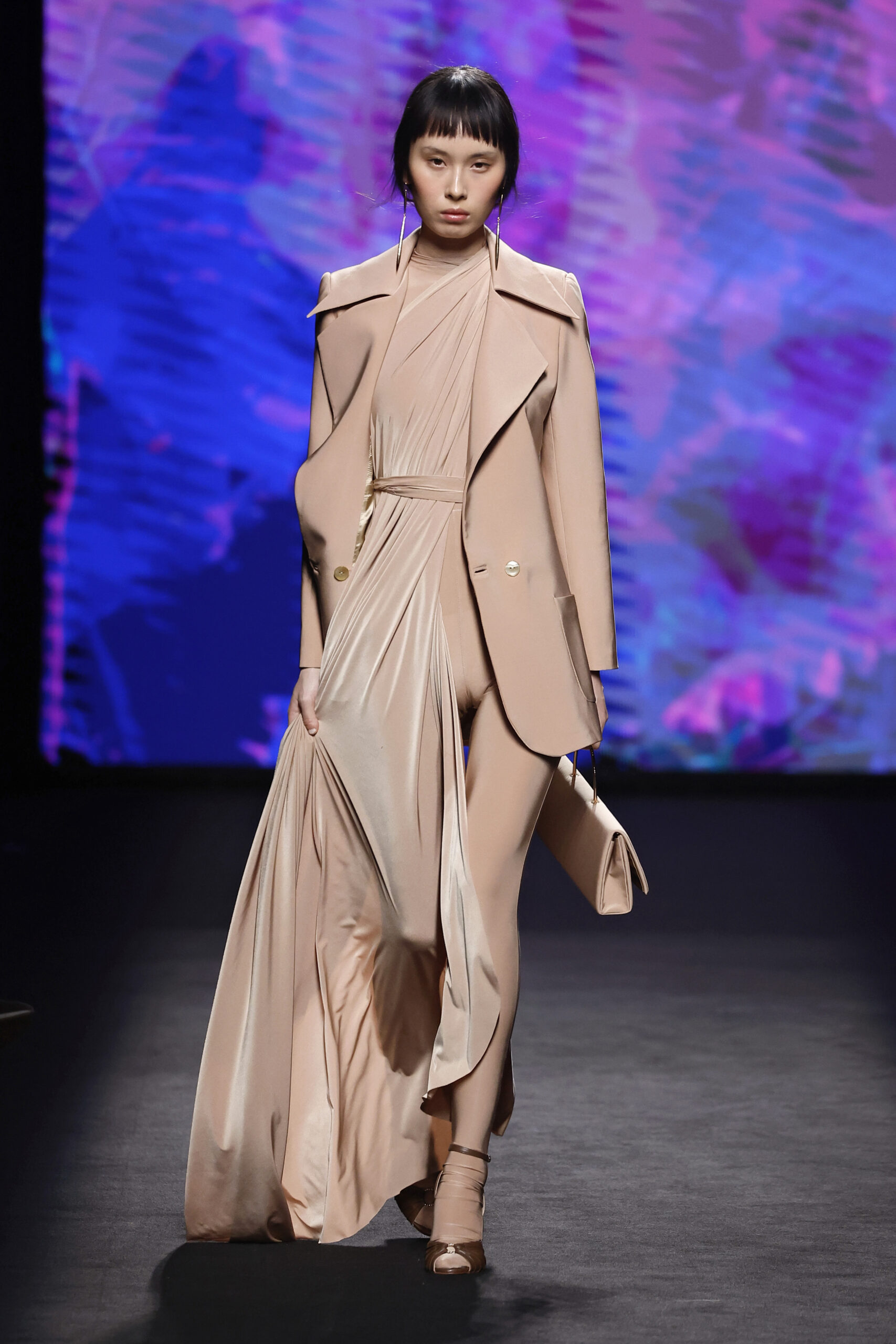 La colección se presenta asentada sobre una paleta de tonalidades malvas y verdes apagados, que va abriéndose para dar paso a intensos chocolates y negros. Tonalidades que bailan siempre en torno a los empolvados y nudes, enfatizados por esa fragilidad y transparencia de los tejidos empleados. Este conjunto evoca la armonía de un jardín en plena floración, mientras que los estampados abstractos representan lo místico y la belleza caótica de la naturaleza.
