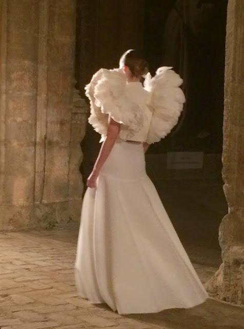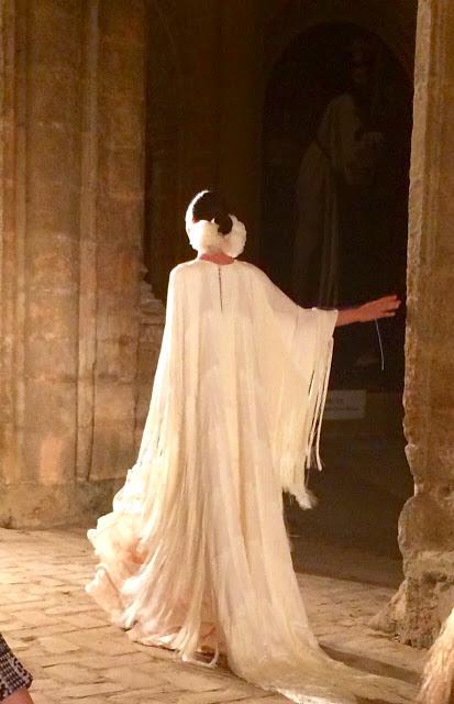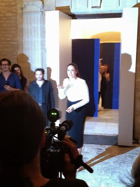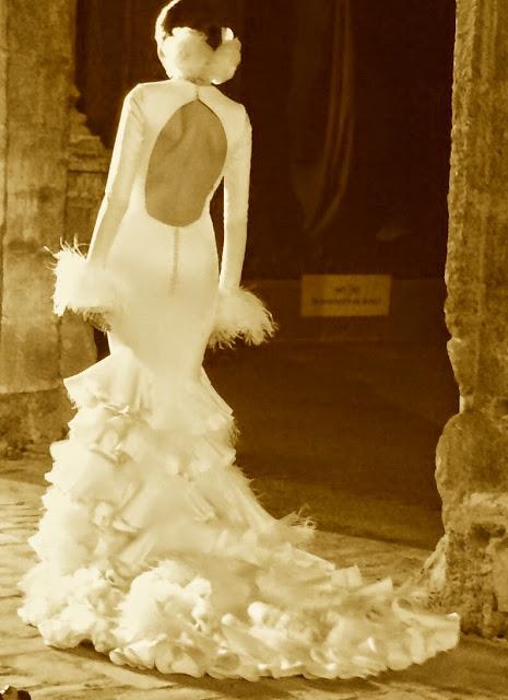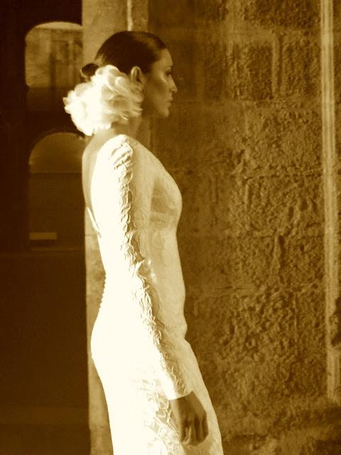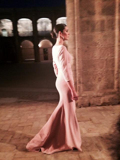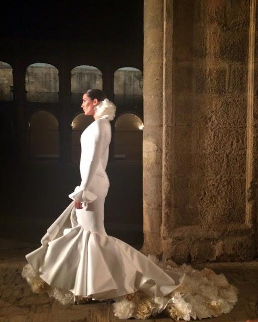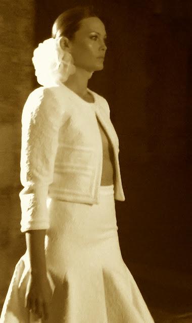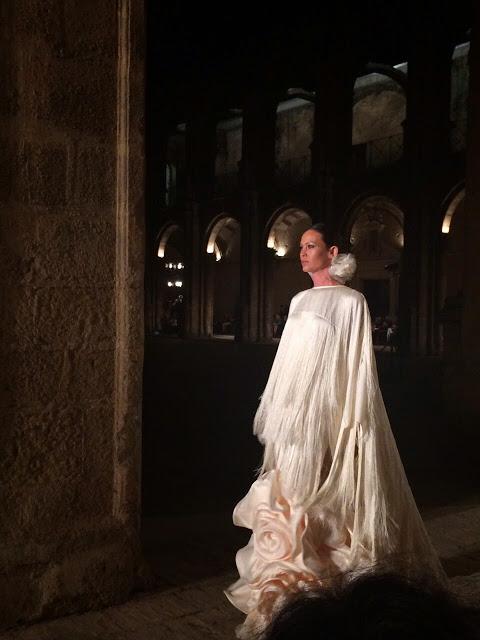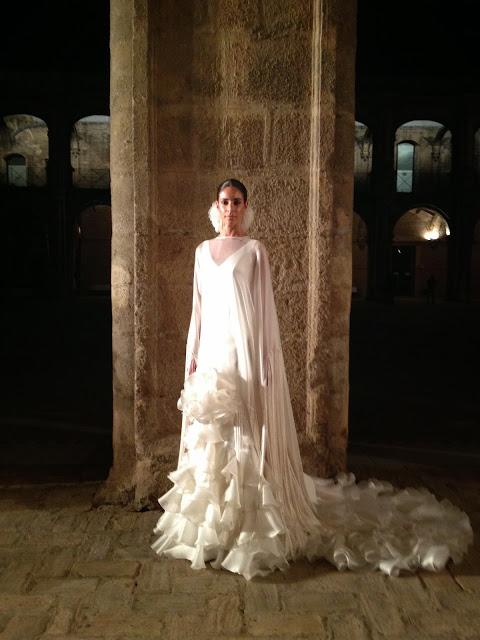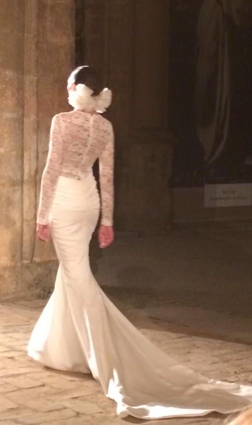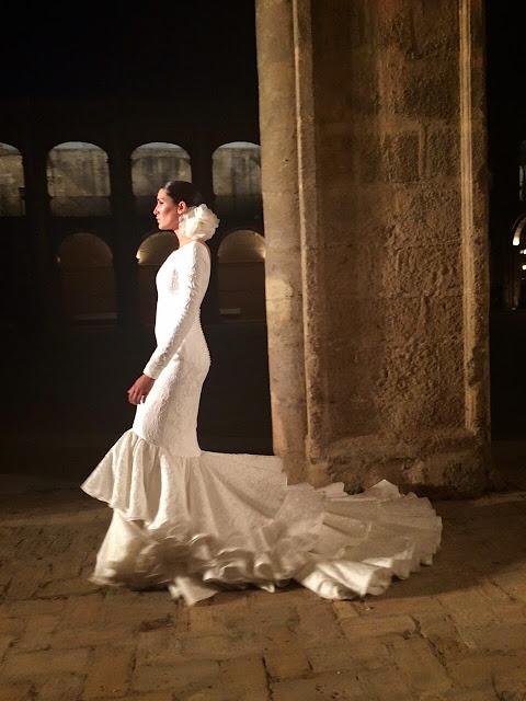 En un lugar de cuento, en el Monasterio de San Jerónimo a las nueve y media de la noche, se celebró el desfile de novia y madrina de Vicky Martín Berrocal. Ni en los mejores rezos ni en las más profundas suplicas esos monjes imaginaron algo así. Os tengo que decir que cuando voy a los desfiles de Vicky Martín Berrocal se produce en mí como una especie de catarsis. En una vida llena de prisas y ruido, el aire se me hace más puro que en cualquier otro lugar. Es al único desfile que siempre voy con pañuelo en mano porque sé que no es una sucesión de trajes, es moda que te revuelve por dentro, desnuda lo más profundo de ti y tu alma viaja en vía libre. Si a todo eso le sumas una música perfectamente elegida te darás cuenta que la imaginación es más rápida que la vida. No os voy a hablar de lo perfecta que es en la ejecución porque me parece una cosa tan obvia que no tiene sentido.