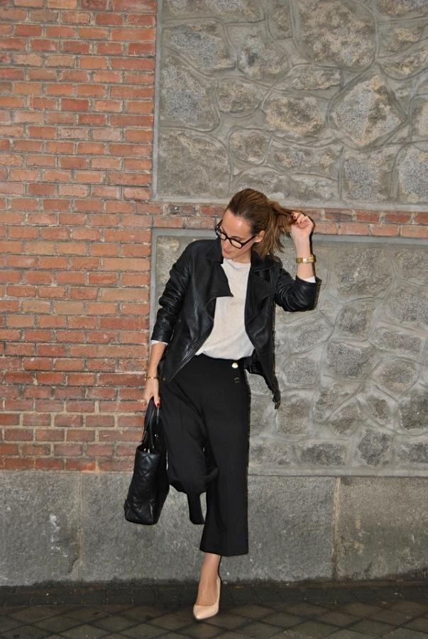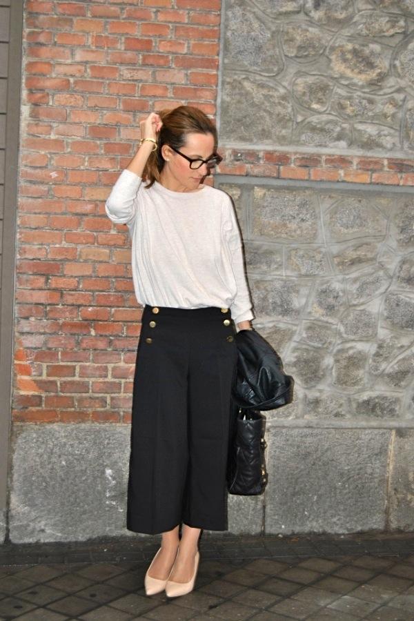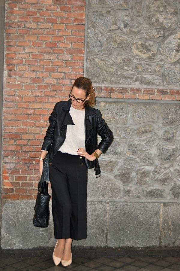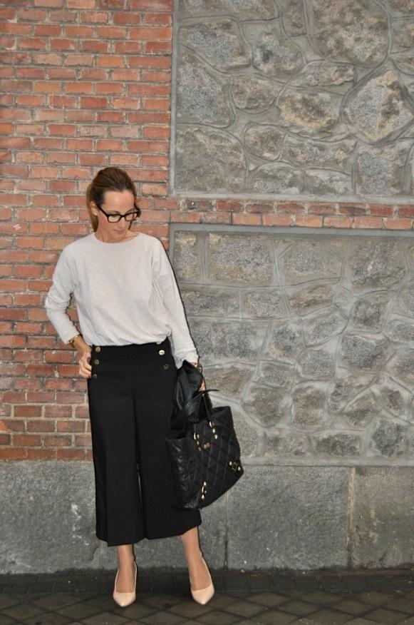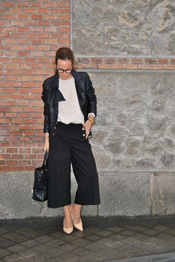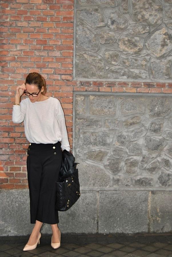 Hasta los días de lluvia como las fotos de hoy me parecen que tienen su encanto. Como dice una amiga mía lo peor que te puede pasar es que te mojes. Claramente todo tendrá el color que quieras darle. Aunque yo me he vestido de negro tengo la cabeza de color y el alma un poco en blanco. Veremos como dibujamos el día de hoy… pero no os olvidéis de sonreír. Llevo jersey y perfecto de Zara, pantalón culotte de H&M, me encantan como quedan los botones dorados… le da el toque elegante, zapatos de Mango Touch y bolso de Vicky Martín Berrocal, joyas Aristocrazy. Mil besos en el corazón, mañana más.