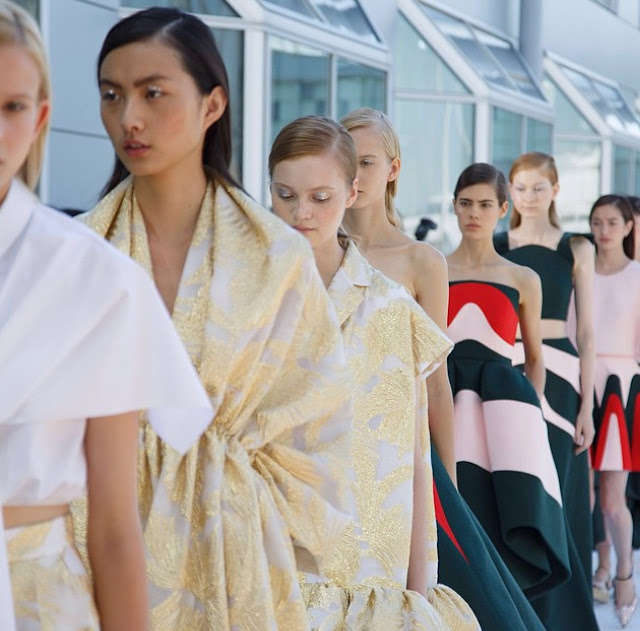 ¡Buenos días! Lo primero de todo y para los más tiquismiquis decir que las fotos de hoy están cogidas todas de las redes sociales. Como comprenderéis me hubiera encantado estar pero no. No me he ido a Nueva York a ver el desfile de DelPozo por el que creo que hubiera empeñado hasta mi casa. Sí, es una exageración pero es que tengo la gran suerte de haber asistido ya a uno así que la espinita me la quité hace unos dos o tres años.