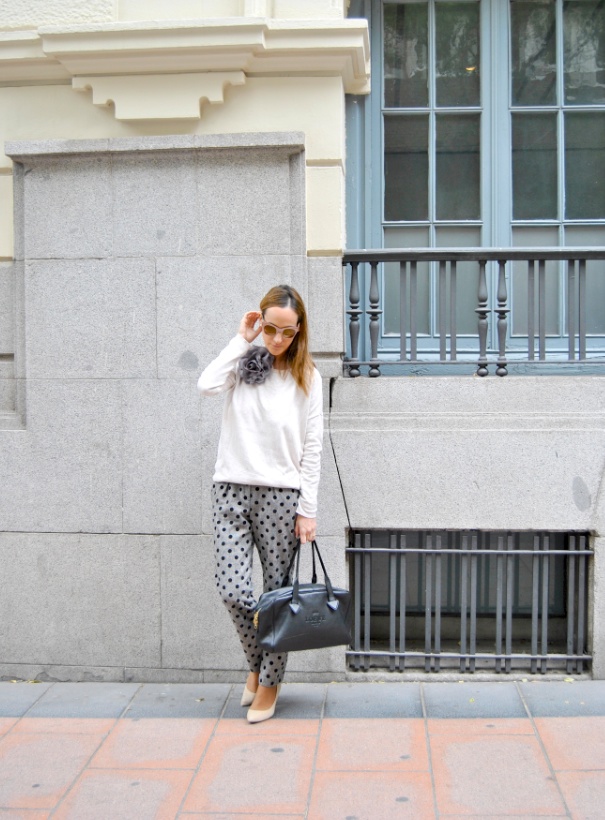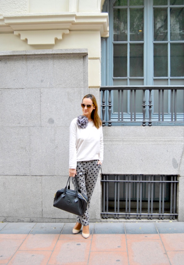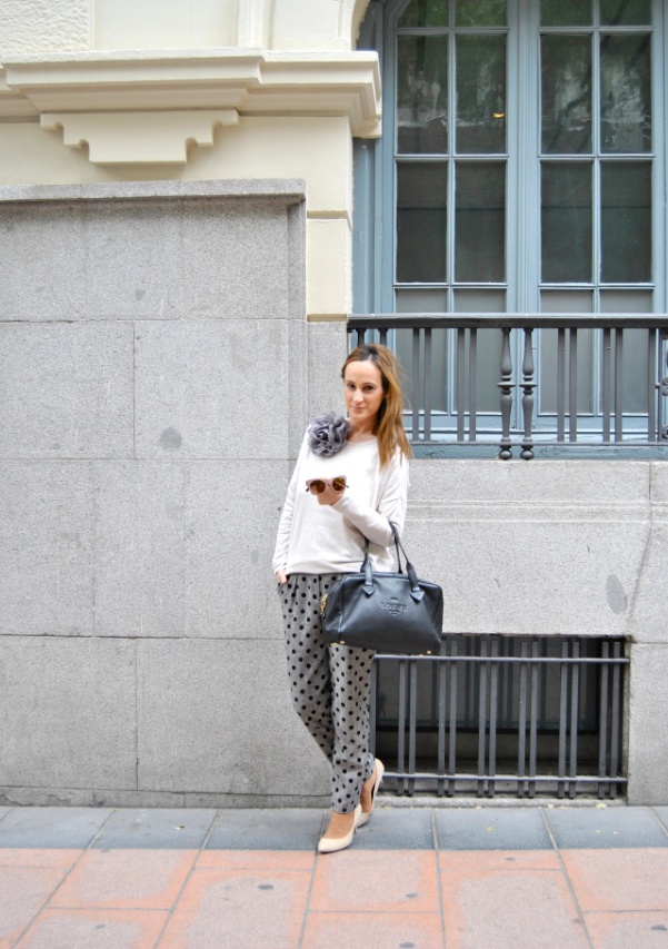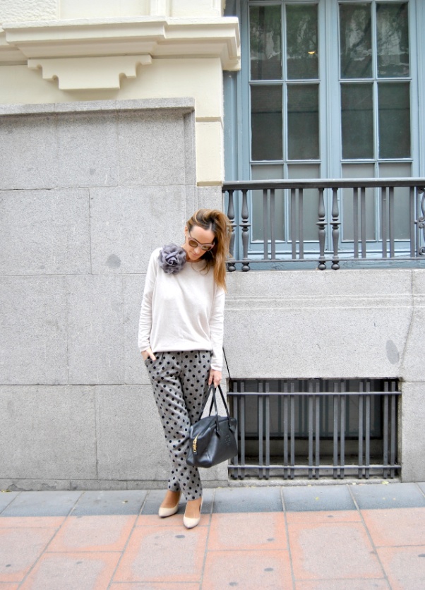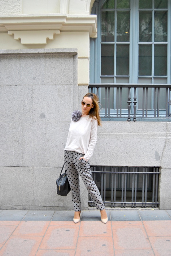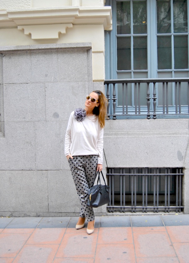 Como soy así de cabezota que hasta que no consigo algo no paro de buscar pues al fin encontré esta. La compré en el Rastrillo Nuevo Futuro del que os hablé el lunes, también os puse un canotier por las redes sociales que os enloqueció. Es verdad que en un principio me echó un poco para atrás el precio pero finalmente volví a por ella. No me digáis si no la puse en el lado correcto, a la altura perfecta porque francamente me da lo mismo. Me la vi bien ahí y se quedó tal cual. Lleva una pinza y un imperdible así que opté por la pinza al cuello para no estropear el jersey. Los pantalones son otra de mis pasiones de mi vestidor… son de Coosy, jersey y zapatos de Zara y bolso de Loewe. Mil besos en el corazón, mañana más.