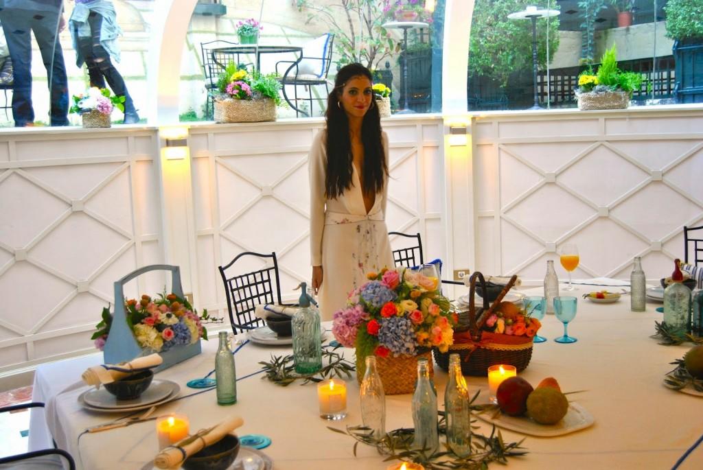 ¡Buenos días! Ayer Cristina Piña presentó a los medios sus propuestas para la primavera-verano de 2015. Llamada Here Comes The Sun, ésta es ya la décima colección que presenta la diseñadora llena de feminidad y delicadeza. A eso del mediodía llegué al Hotel Orfilia de la capital para ver el desfile estático que estaba preparado en una mágica cúpula envuelta de modelos que cada cierto tiempo iban y venían primero con prendas de día y luego con perfectos trajes para la noche. Desde que llegué hasta que me fui el aroma que invadía la sala envolvía el ambiente de una manera idílica con aromas como el naranjo, la hierbabuena, lavanda, flores como las peonias o las astromelias. Una manera sutil de involucrarnos en una colección inspirada en el mediterráneo, su cálida luz, sus atardeceres, un verano mágico en el que todos los asistentes ansiábamos la llegada del verano.