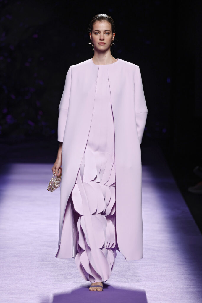 Sobre el colorido, aunque el blanco y el negro son predominantes en la colección, desde la firma han jugado con tonalidades suaves, ligeras y románticas como los tonos lilas, morados y amarillos.