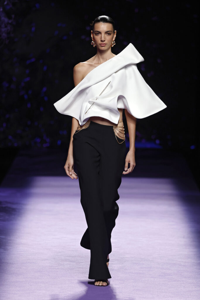 Han creado una colección libre de las limitaciones del tiempo con una renovación del tuxedo, símbolo del estilo más puro. Aparecen toques de lencería en algunas prendas que aportan un detalle femenino junto con lazos.