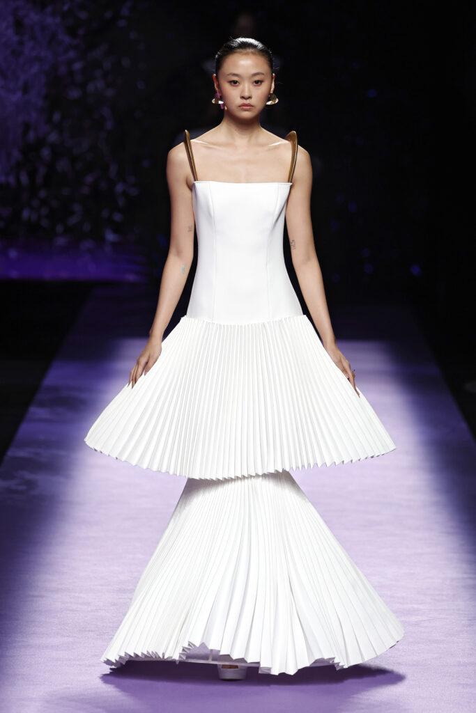 En definitiva, es una colección donde se realza el trabajo artesanal combinado con nuevas técnicas como el micro plisado solei hecho a mano y vestidos envolventes para crear piezas especiales.
