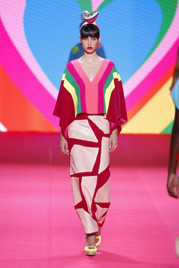Una vez más, Ágatha Ruiz de la Prada vuelve a la pasarela pisando fuerte, con intenciones explosivas, multicolores, y revolucionarias. África y su geometría abstracta (a todo color) es la principal inspiración de la colección Primavera/Verano 2024.