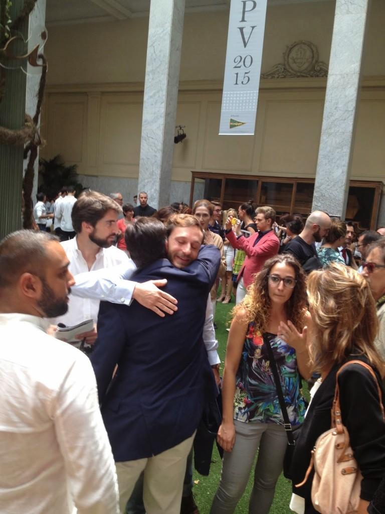 Celebrities como Jaqueline de La Vega, Juan Peña, Nerea Garmendia y Jesús Olmedo… Todos sentados y yo buscando mi nombre que nunca la S se me hizo tan larga. El caso es que llegué, me senté y la chica que estaba al lado resultó ser la novia de uno de los modelos. Bendita suerte la suya. Una pareja portuguesa que él desfilará para alguno de los desfiles posteriores y es que siempre se aprenden cosas. En la maleta de la moda me llevo anécdotas sin fin, un día os contaré algunas… Ya sabéis que yo siempre cubro moda enfocada a la mujer, es el campo que más sé, del que más información manejo y del que puedo hablar con propiedad. De hecho creo que es el primer desfile de moda masculina que veis por aquí. Pero no por eso, no es que no sepa de lo que se lleva en hombre. Cuando uno tiene “sentido de la estética” y alguna que otra cosa más, sabe lo que ve y sabe lo que es un acierto, un éxito, algo diferente… Lo mismo que con moda mujer pero sabiendo que si te enloquece te lo puedes poner.