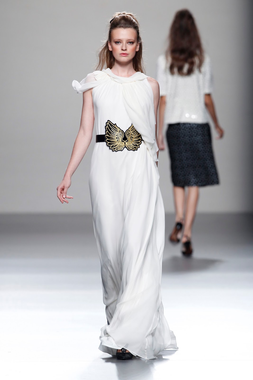 Pero la conocida pasarela Cibeles ha empezado fuerte y durante todo este fin de semana se han dado cita algunos de los mejores diseñadores del país. Entre ellos, Ion Fiz, Agatha Ruiz de la Prada, Devota&Lomba, Andrés Sardá, Miguel Palacio, Maya Hansen, Teresa Helbig…en fin, que no os los nombro todos porque como veis estos tres días han dado mucho de sí. Poco a poco os los iré resumiendo. Aparte de la cita con Madrid Fashion Week también he podido asistir a otros acontecimientos relacionados todos con la moda. Que si fiesta post desfile o exposiciones como la de Loewe titulada “Backstage”. Pero de eso os hablaré más adelante puesto que pude sacar algunas fotos para que las veáis por aquí. El resumen a grandes rasgos de lo que he podido ver hasta ahora para el verano de 2014 en muchísimo blanco, negro y turquesa. Van a ser los tres grandes colores del verano. Vestidos vaporosos, tules, gasa, seda, todo muy romántico y femenino. Se sigue llevando el vestido largo que apuesta con fuerza, los topos y las rayas…Pero mejor lo veis en las fotos…