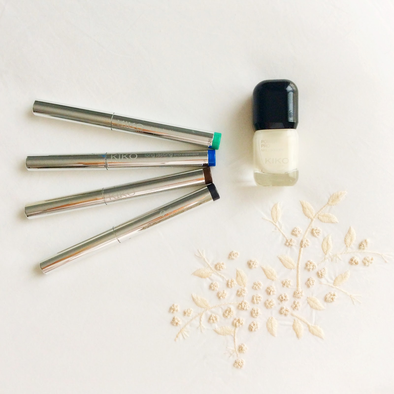 Mi kit de rayas de ojos: Eso más otra laca de uñas en color blanquito, de KIKO todo. Yo os digo que pruebo mil y nunca va mal tener porque es un color muy básico. En cuanto a las rayas las compré así porque venían en un pack que salía muy bien y los colores me gustaban. Se pueden difuminar de tal forma que hace la vez de sombra. Yo para los cosméticos soy muy apañada. El otro día fui a Sephora y me dijo la chica ¡Eso no es para eso! Pensé… a mí que más me da si estoy encantada y hace años que lo uso. Cada una como se vea bien eso es de ley.
