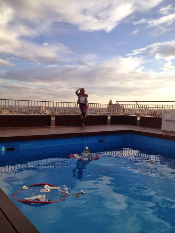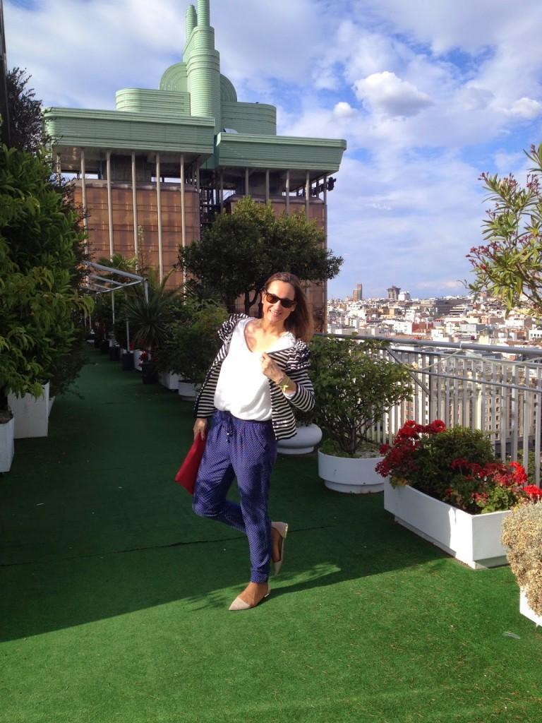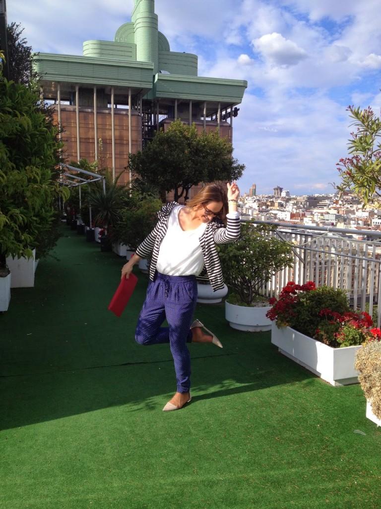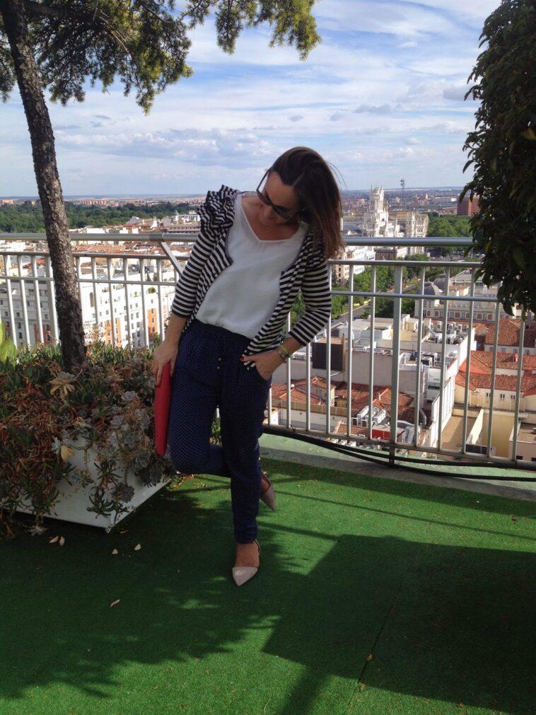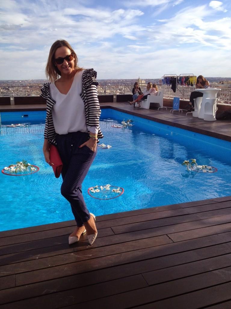 Se llamaba #modaconamor y varias tiendas mostraban sus propuestas en esta preciosa azotea con piscina incluida y a la que yo tengo un cariño especial porque viví momento súper bonitos gracias al desfile de Jorge Vázquez que se celebró en este mismo lugar. Música, unos vinitos y ver las propuestas más actuales es de la manera en la que se nos pasó la tarde. Me encantó un mono que os he dejado la imagen más abajo para que lo veáis. Es de Anatomía y creo que va a ir directo a mi vestidor. Un desfile cerró la tarde-noche con unas vistas impresionantes de toda la capital. Merece la pena subir y poder verlo porque literalmente tienes a Madrid a tus pies. Me despido ya por hoy pero antes os quería dar las gracias por la cantidad y cantidad de mensajes que me llegaron por el post de ayer. Con todos me emocionaba muchísimo y es que la acogida fue espectacular así que de corazón gracias nuevamente. En look de hoy llevo una chaqueta de hace muchos años de H&M que me encanta porque es muy especial con esos volantes y además ahora que se llevan las rayas más actual que nunca, pantalones de Suite Blanco, zapatos de Zara, cartera Primark y gafas Ray Ban. Mil besos mañana más.