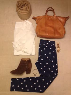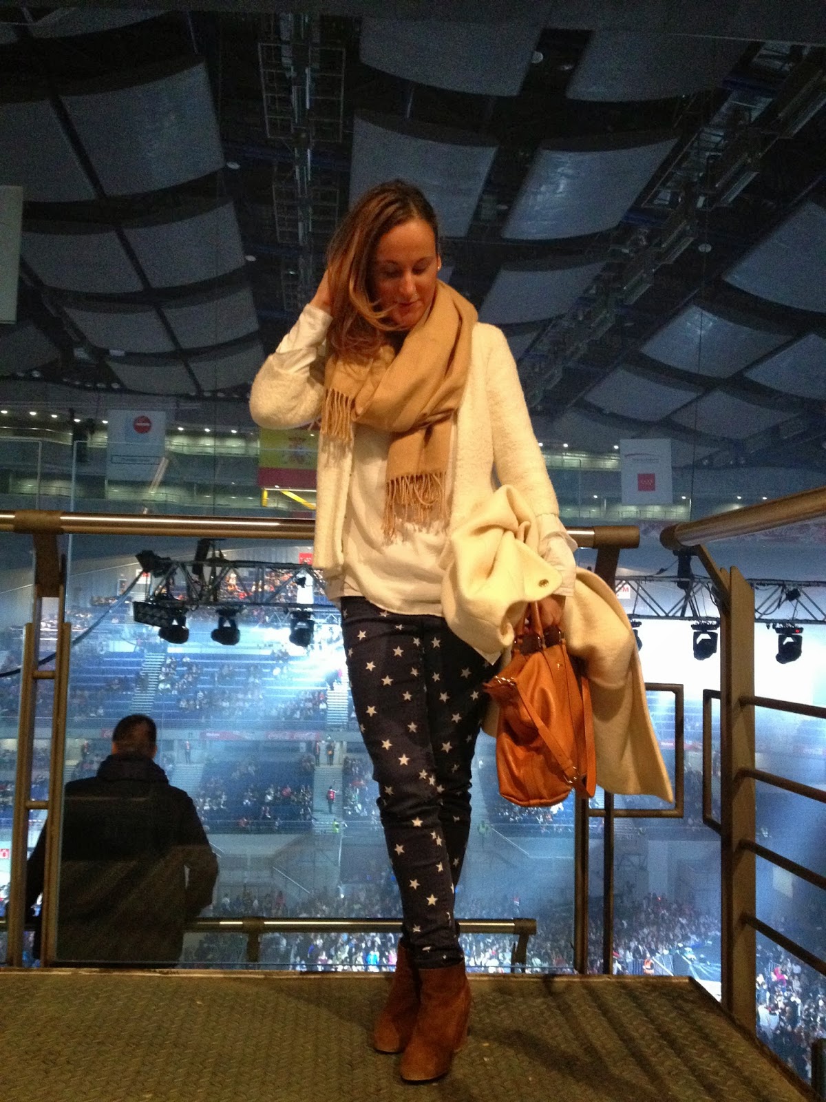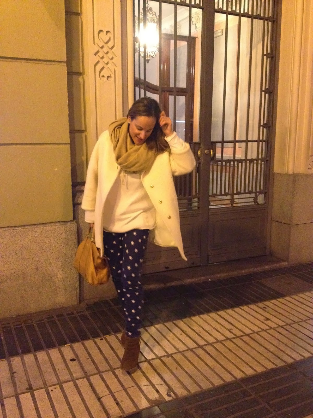 Llevo camisa de Massimo Dutti, pantalón de estrellas de H&M, botines Zara, bufanda Oysho, bolso Bimba y Lola. La pulsera os la enseñaré mejor el martes. Se trata de una iniciativa solidaria de la marca CHICCO y que mañana os contaré con detalle con el resto del post. Como veis un look cómodo ¡para poder bailar sin problema!