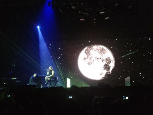 Por eso el Pabellón de Deportes de la Comunidad de Madrid albergó a cerca de 17.000 personas para ver en directo un Show único que ya ha sido grabado con la colaboración de artistas como Manuel Carrasco, Rosario Flores, Antonio Orozco, Alex Syntek o David Bisbal. Una puesta en escena que iba cambiando según los temas, desde unas alas de ángel gigantescas proyectadas sobre una pantalla en las que, a la vez que se movían, ella subía y bajaba agarrada a unas cuerdas, un “teatro” con su piano y voz para posteriormente aparecer en escena David Bisbal o unas rejas emulando a una prisionera. Un sin fin de momentos que al parecer pronto emitirá Mediaset según algunas fuentes y del que muchos disfrutamos en lo que para mi fue un sorprendente directo. Algo más de dos horas y media de energía inagotable, con un equipo de lujo y un “sold out” en la puerta. Chapó.