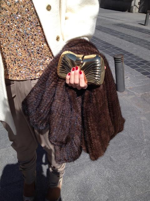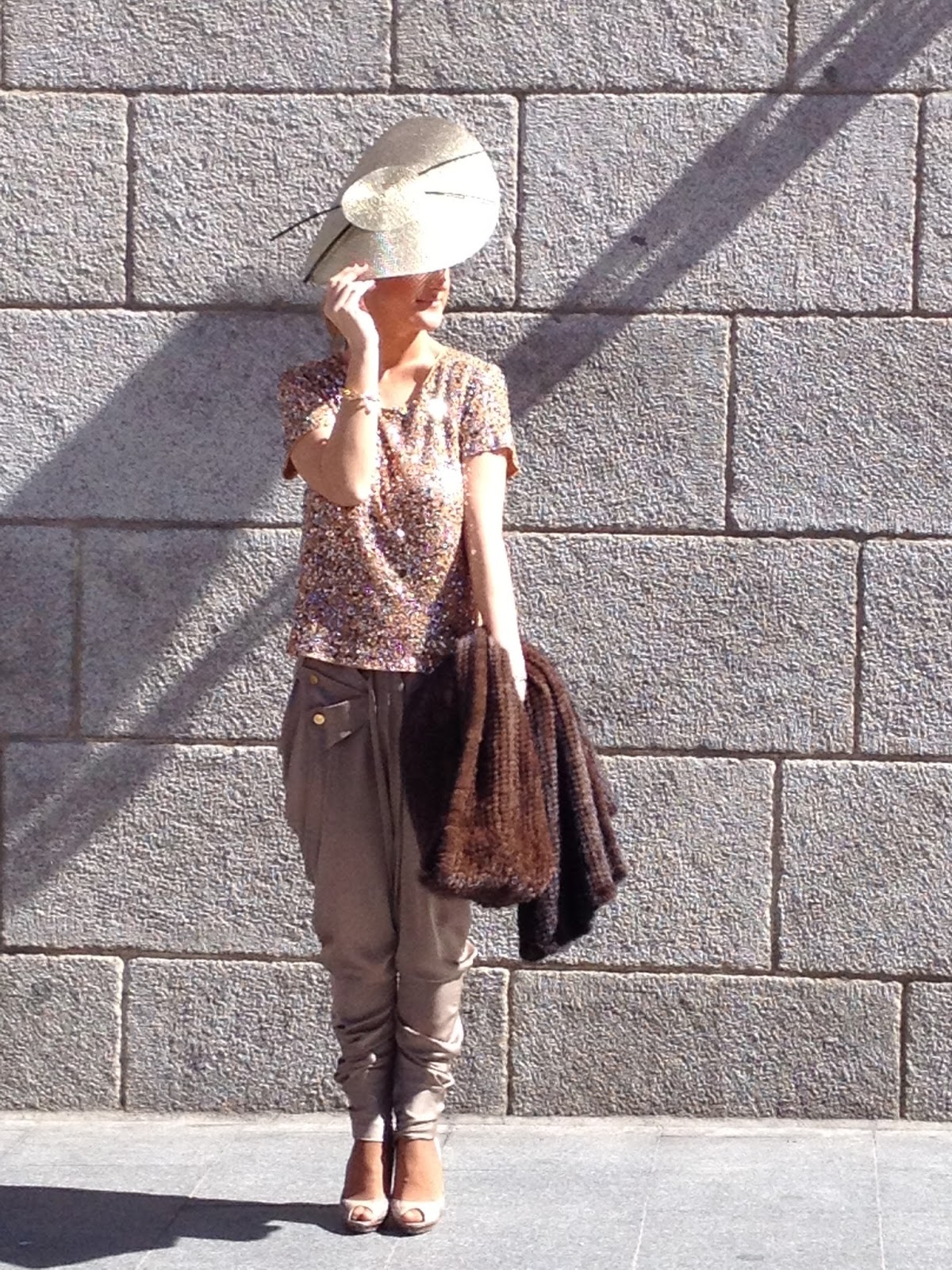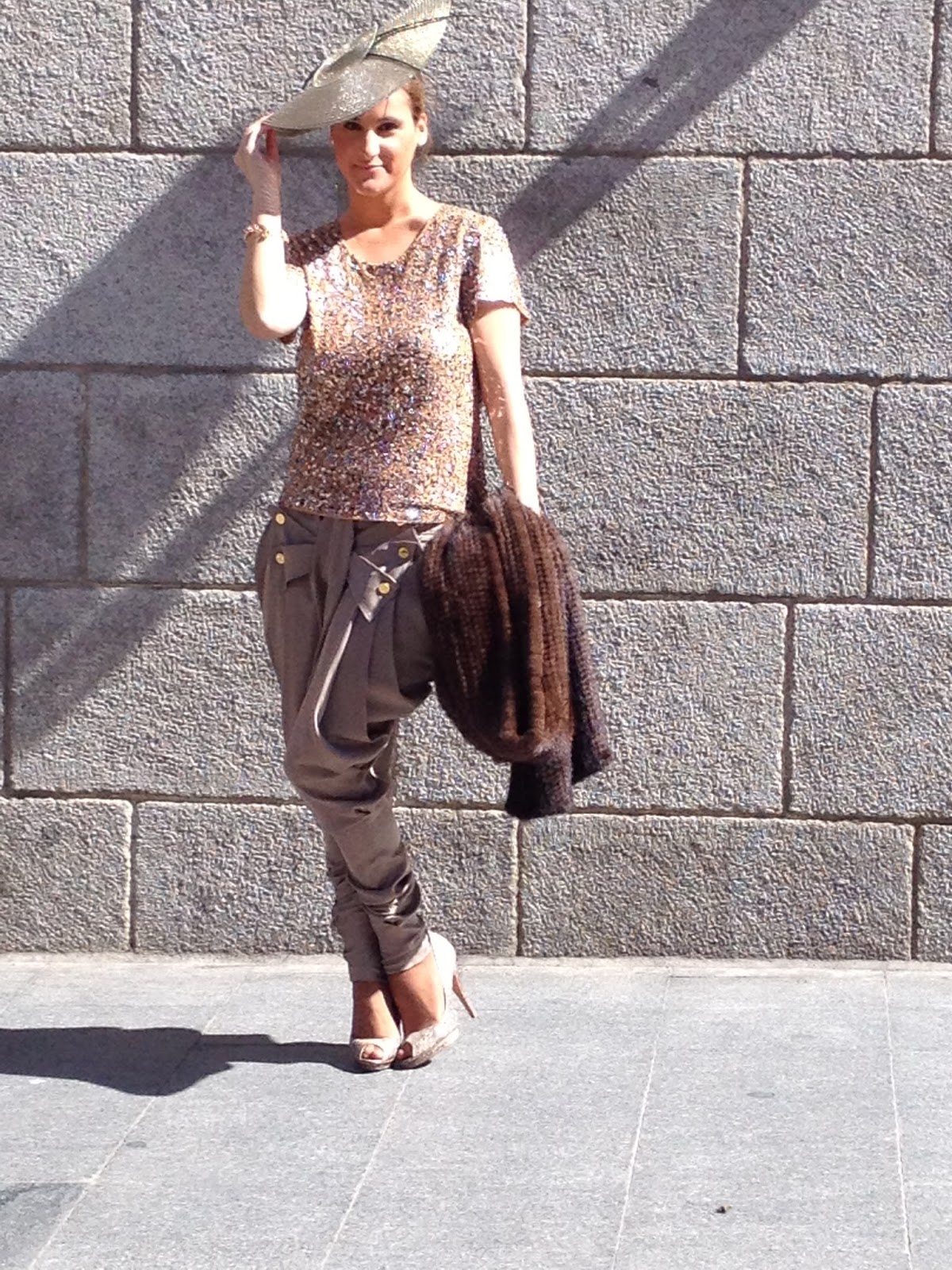 Aquí os dejo el look de ese día. Llevo parte de arriba de pailletes de BDBA, pantalón de Miguel Palacio, tocado hecho por mi (deprisa y corriendo,aisss que estrés), zapatos de Uterque, pulsera de Aristocrazy, cartera de mano vintage y estola de visón cedida por mi madre ¡qué haría yo sin ella!