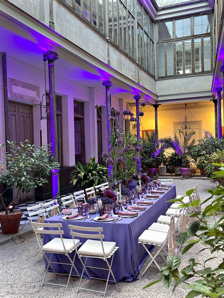 La marca ha citado a la prensa con su imagen más destacada, hace años que la actriz es la mejor embajadora de los productos tecnológicos. Un encuentro y una cena posterior que se sirvió en el patio central característico por sus vidrieras y esbeltas columnas, con una decoración exquisita y flores en cada rincón.