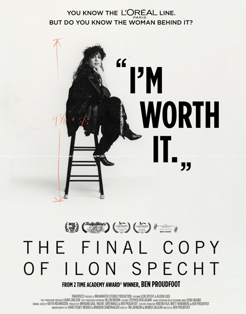«El poderoso eslogan Because I’m Worth It (Porque yo lo valgo) es una de esas cosas que forman parte de la sociedad y que la cambiaron desde dentro. Realmente quería captar el espíritu de esta increíble mujer que, siendo una redactora de 23 años en una agencia de publicidad, consiguió crear un cambio sistémico. Lo que me pareció profundo, en cuanto hablé con Ilon y con su familia, fue que esas palabras, “Porque yo lo valgo”, que luego se convirtieron en “Porque tú lo vales”, hablaban de quién era ella. Y eran ideas por las que ella vivía. No era sólo una frase frívola», explica Ben Proudfoot, director.