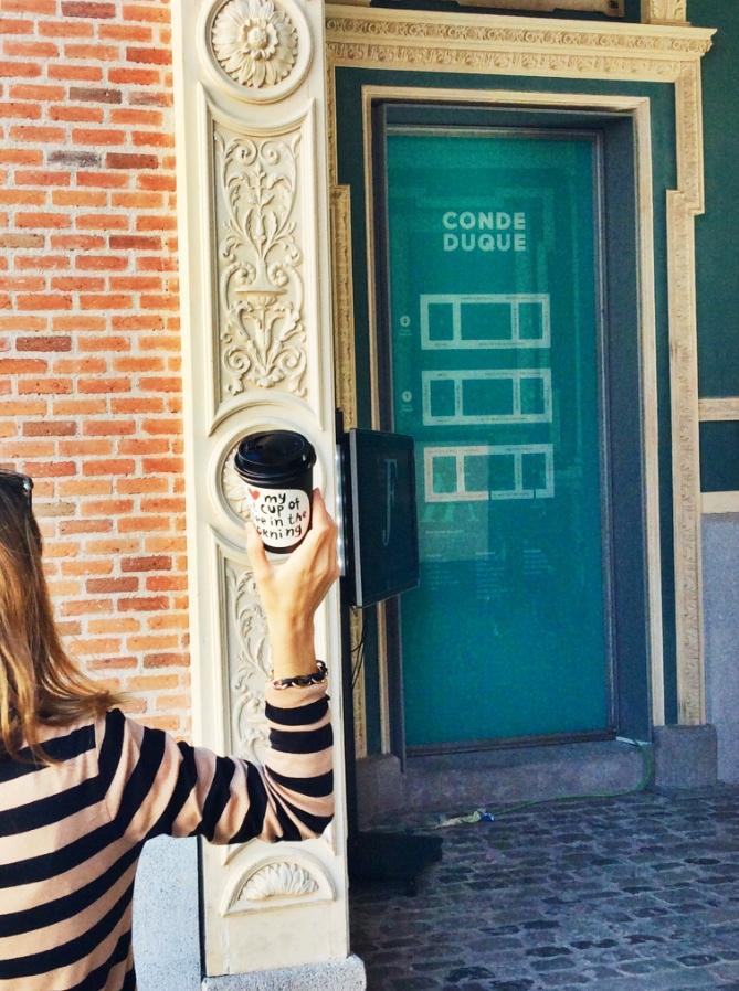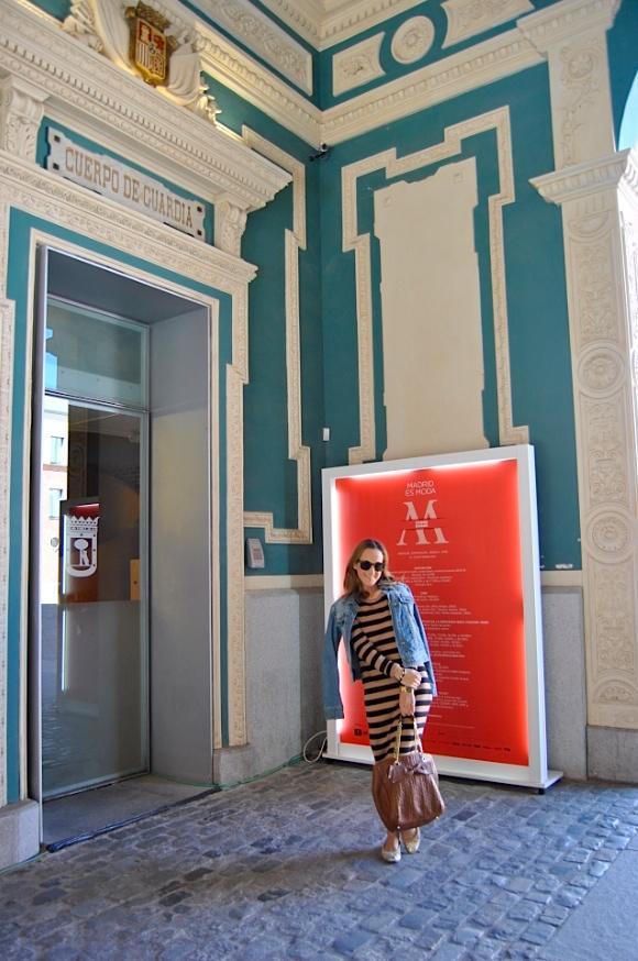 Son muchos los sitios que están haciendo pequeñas acciones en estos días. También Platea en la Plaza Colón podéis ver los desfiles en directo en su enorme pantalla, el Thyssen alberga “La moda a través de las obras de la colección del museo”, así como por supuesto el Museo del Traje con una expo homenaje a Elio Bernhayer. Para los más gourmets el Hotel Único o las Pastelerías Mallorca tienen un menú especial. Si hablamos de colorido eso siempre lo pone Agatha Ruiz de la Prada que viste Madrid con los contenedores de ecovidrio en Fuencarral y Serrano. Como os imagináis no pueden ser más divertidos, a ver si en estos días me da tiempo a fotografiarlos para que los veáis. Pero como os decía mi primera parada fue en el Conde Duque. Para los que no sepáis dónde está, se encuentra detrás del Palacio de Liria bajando por la Calle Princesa.