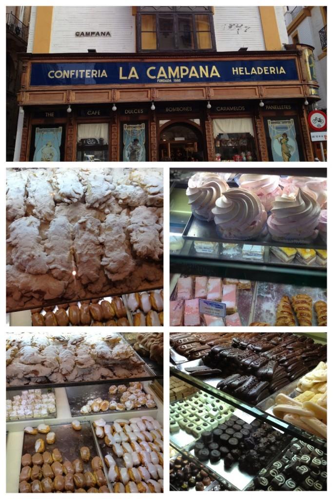 La Campana. Una tienda emblemática para hacer un descanso a media tarde. A eso de las 6 rebosaba de gente que quería comprar sus pastas más típicas, hojaldres y los merengues con los que morí. No hay nada que me guste más que un merengue, prefiero que me regalen uno a que me regalen ropa. Imaginaos como será…
