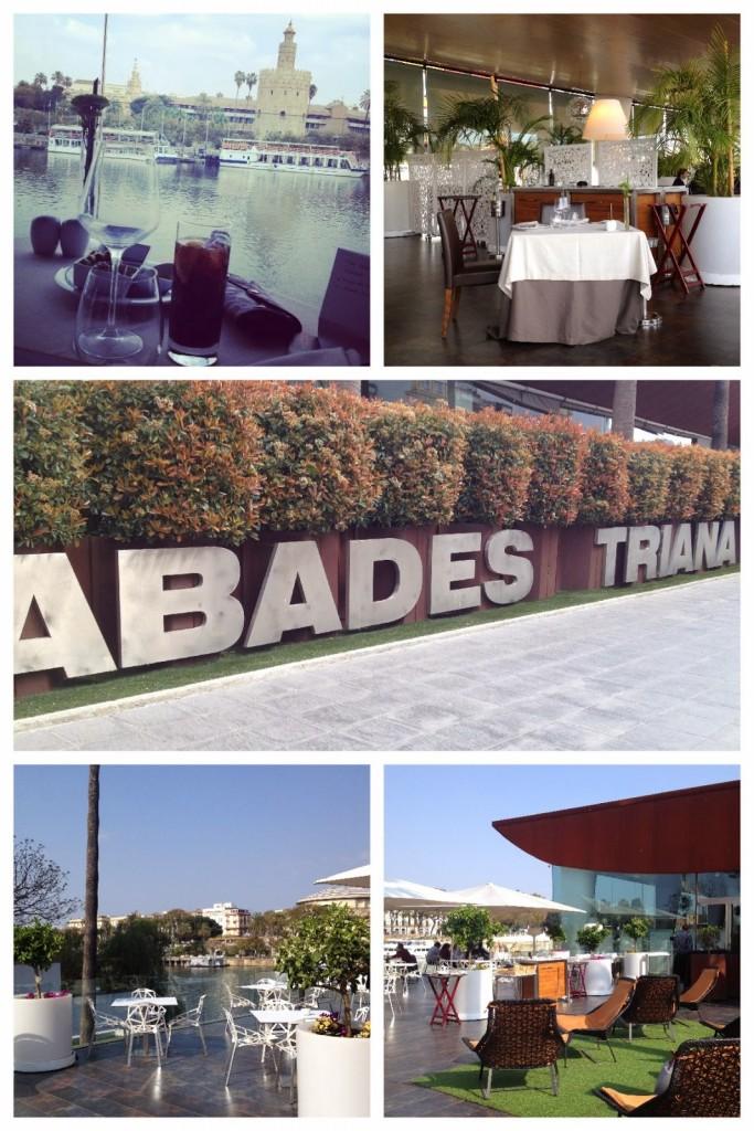 ABADES TRIANA. Un sitio con encanto para comer de Sevilla es sin duda el Abades Triana. Como su nombre indica se sitúa en pleno barrio de Triana y lo que mejor tiene nadie puede negar que son las vistas. Con una terraza maravillosa a orillas del Guadalquivir fue una experiencia muy agradable comer viendo la panorámica de la ciudad. ¡Os lo recomiendo!