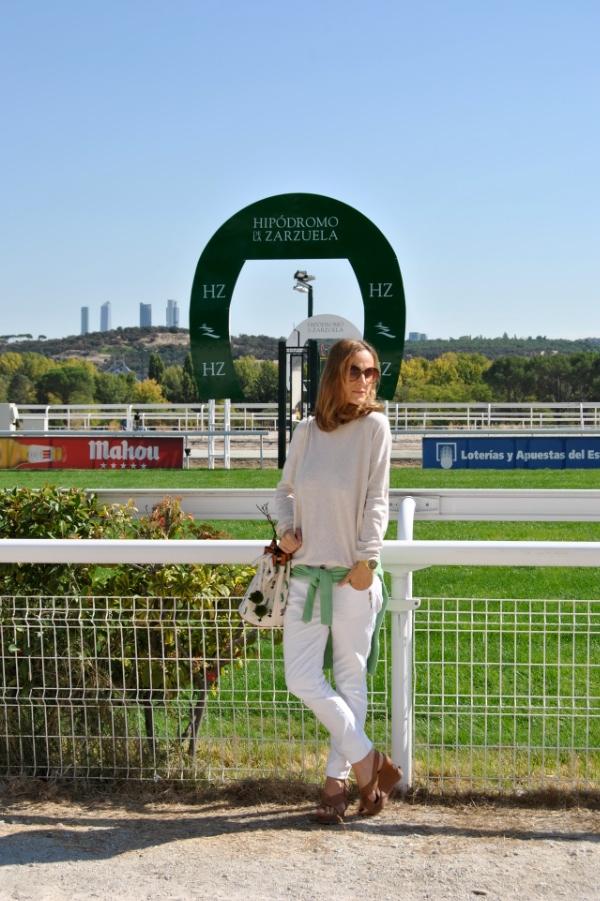Primero de todo quiero desde aquí dar la enhorabuena a Vicky Martín Berrocal por el premio que le han dado este fin de semana a la innovación en trajes de flamenca de la Revista Escaparate. Yo creo que lo he nombrado todo bien… ojalá vengan mil más porque te los mereces todos. Una vez dicho esto y como os iba diciendo, exprimí el domingo al máximo y la primera parada fue en el Hipódromo de la Zarzuela. Han empezado las carreras de caballos, algo que descubrí hace relativamente poco y tengo que decir que ¡me encanta ir! Es un plan súper divertido, me estoy informando un poco para saber apostar, hay un montón de familias con niños, gente mayor, en realidad de todas las edades que disfrutan de un día diferente. Vi tres carreras súper emocionantes, los caballos en las cuadras, la entrega de premios y me tomé una cañita al sol, no pudimos estar mejor. Así que si sois de aquí os recomiendo el plan 100%.