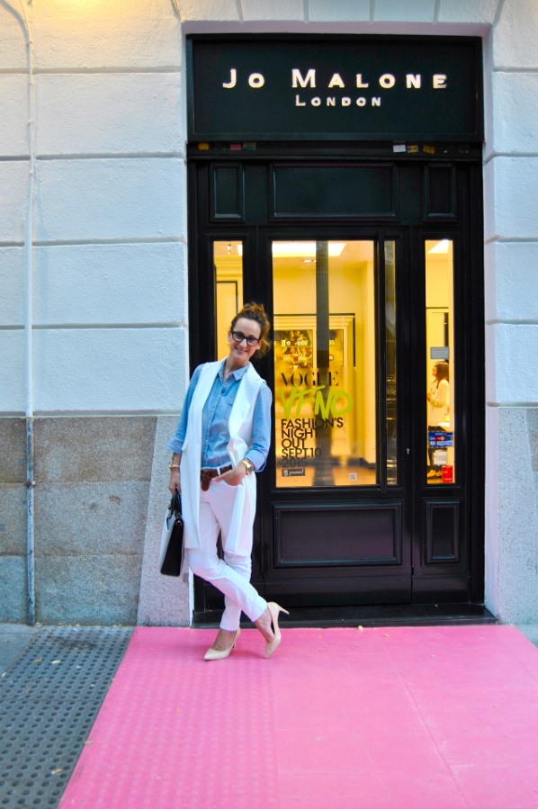 ¡Buenos días! La semana pasada fue la Vogue Fashion Night Out. Normalmente suelo poner las cosas al día siguiente de cuando suceden pero en Septiembre los post… ¡se me acumulan! Así que pasados los días y que tampoco era algo urgente para que vierais hoy os muestro como fue mi look para la VFNO. Os cuento que mi primera parada fue en uno de los locales más de moda de la capital y para no perder mis buenas costumbres, aparqué en la puerta. Ese día está todo el centro de la capital, o el barrio más fashion llamarlo como queráis, lleno a reventar.