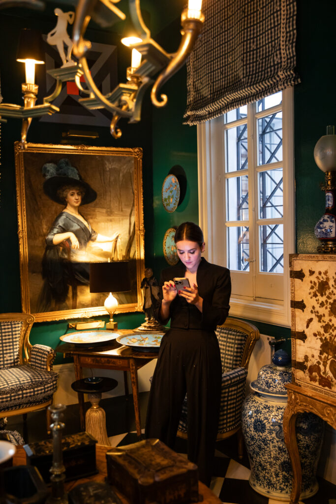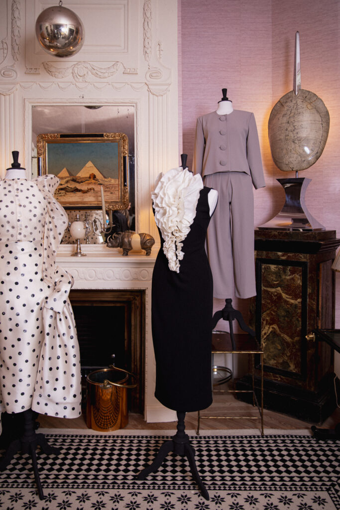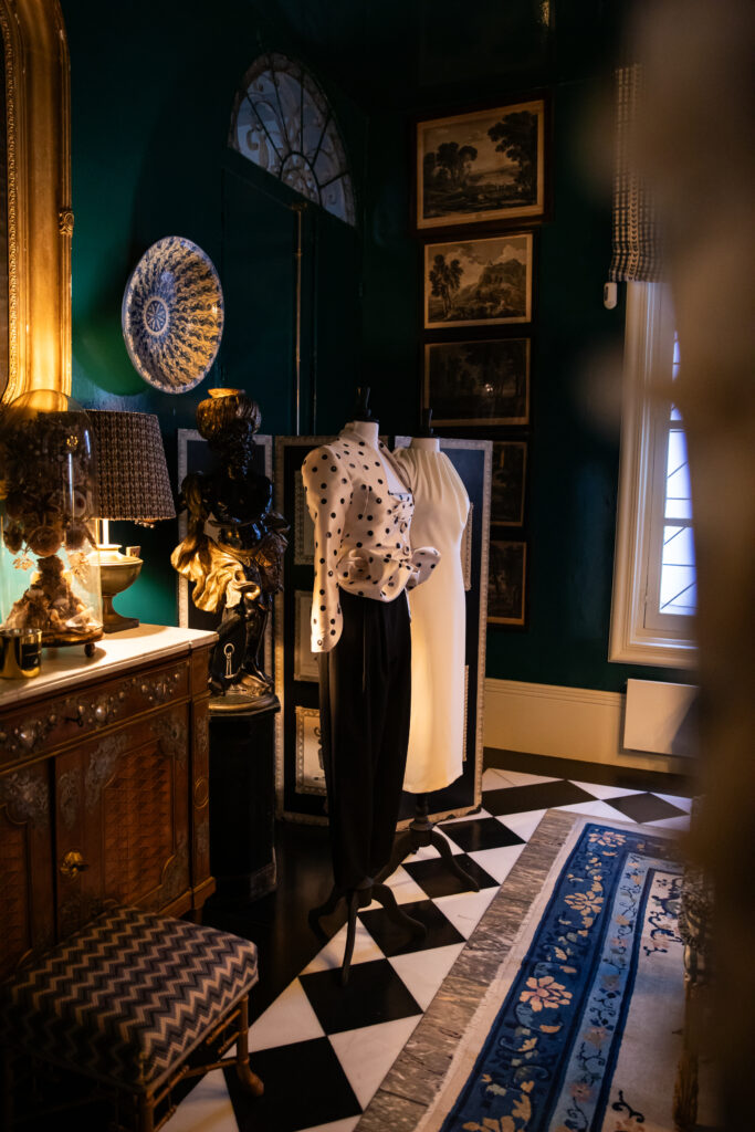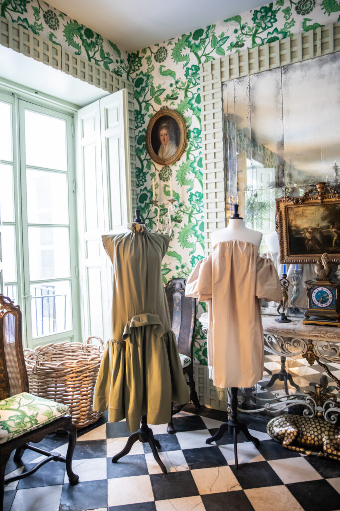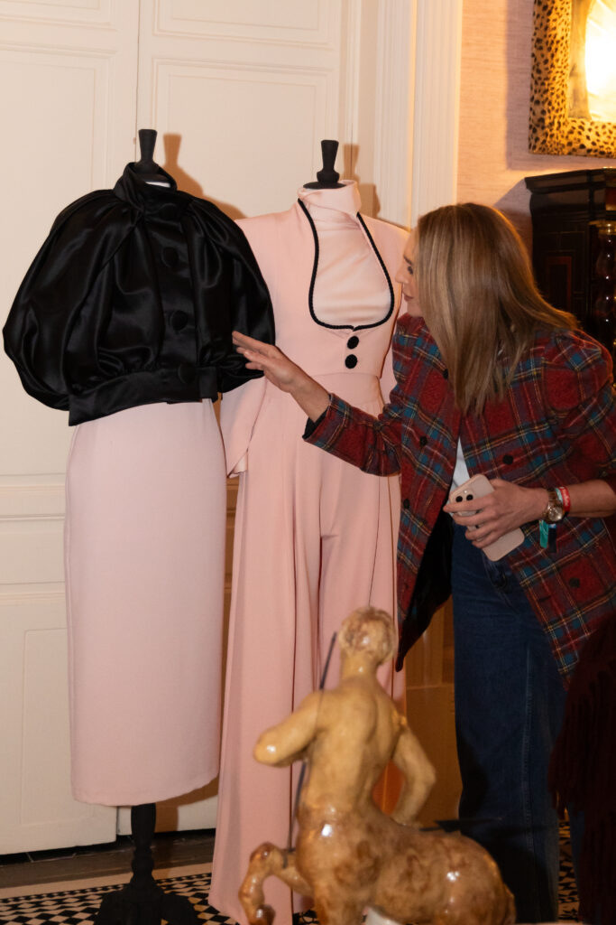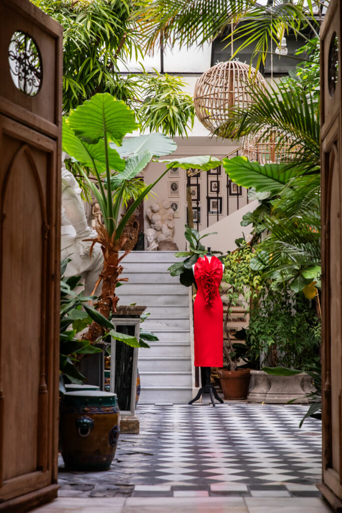 En una calle estrecha, llena de taxis que dejaban a los invitados y tras unas puertas de paso de carruajes, se esconde la casa palacio del decorador Lorenzo Castillo, el lugar elegido para presentar estas piezas tan únicas. Un gran patio recibe a mujeres sofisticadas, cultas y de buena conversación, que suben las escaleras como verdaderas maniquíes. La exquisitez está presente una vez más en casa de Castillo. Hay que recordar que por sus estancias ha pasado lo más granado de la alta sociedad nacional e internacional. Este palacete del s. XIX ha visto a la jequesa de Qatar Sheikha Moza bint Nasser en sus estancias, también albergado la fiesta de cumpleaños de Valentino y hasta una cena en honor a Anna Wintour, la moda en mayúsculas.