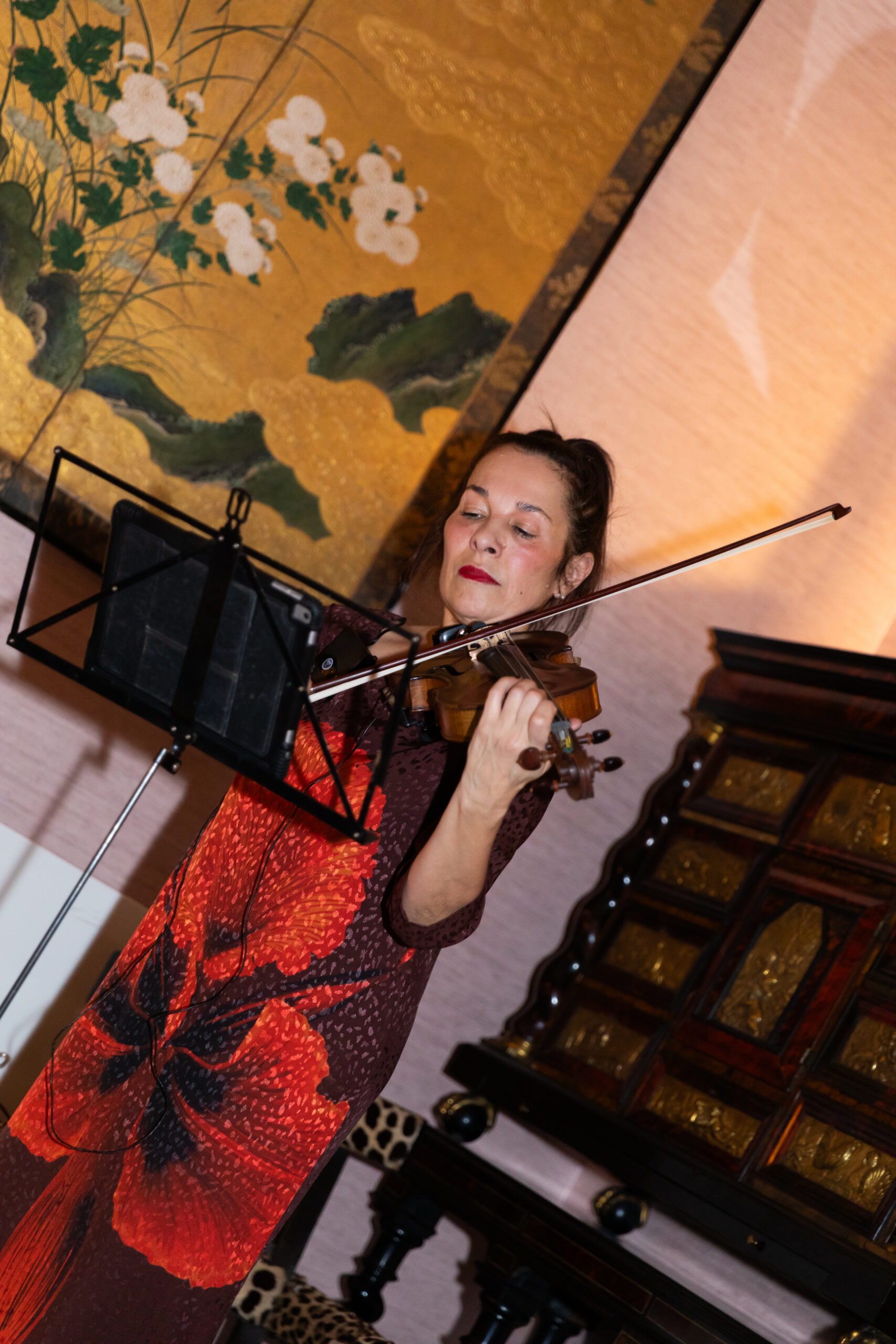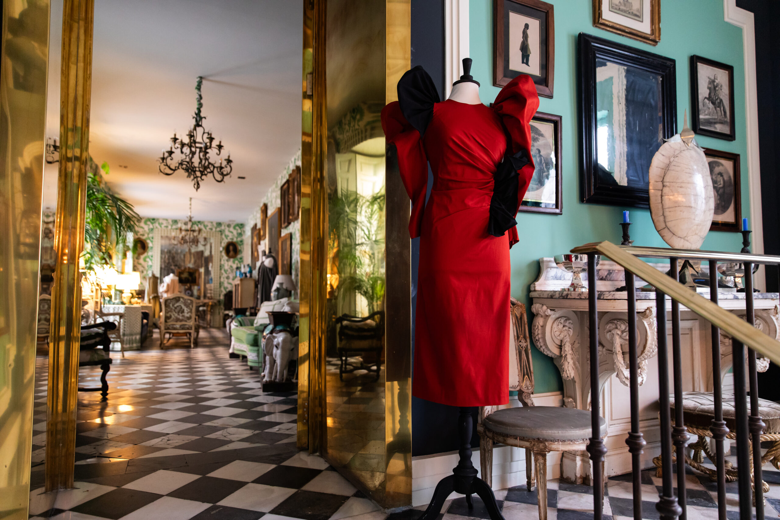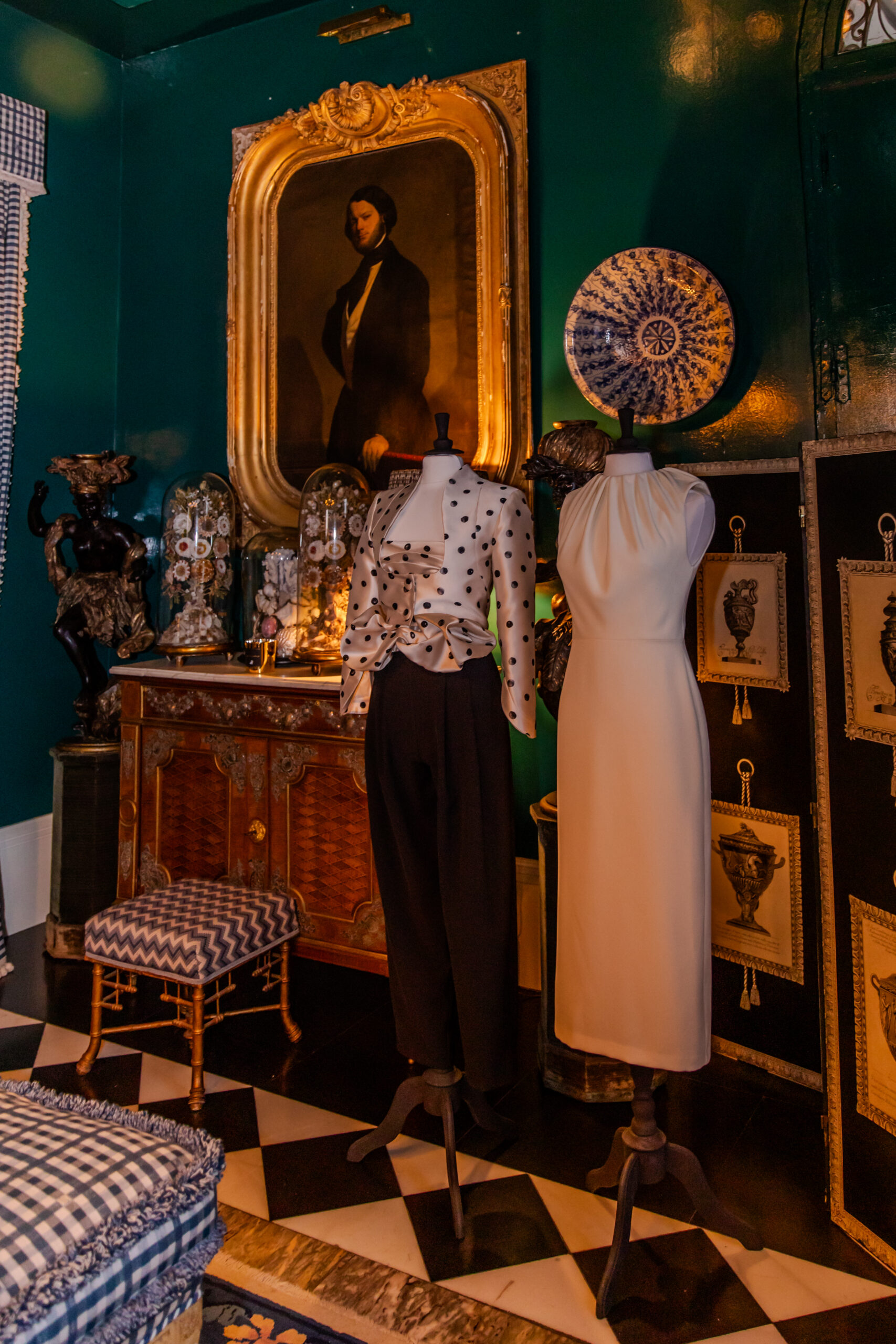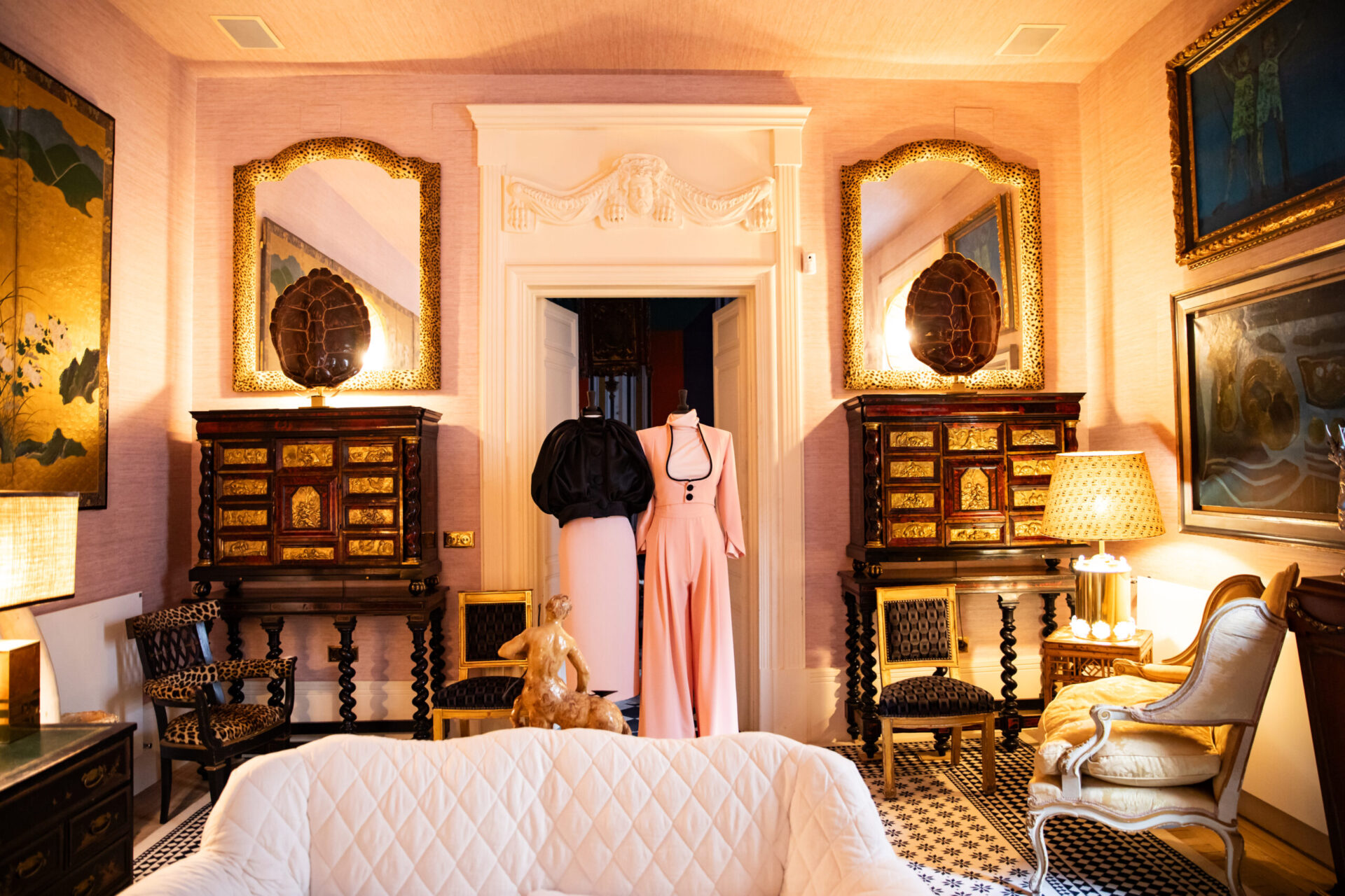 En una calle estrecha, llena de taxis que dejaban a los invitados y tras unas puertas de paso de carruajes, se esconde la casa palacio del decorador Lorenzo Castillo, el lugar elegido para presentar estas piezas tan únicas. Un gran patio recibe a mujeres sofisticadas, cultas y de buena conversación, que suben las escaleras como verdaderas maniquíes. La exquisitez está presente una vez más en casa de Castillo. Hay que recordar que por sus estancias ha pasado lo más granado de la alta sociedad nacional e internacional. Este palacete del s. XIX ha visto a la jequesa de Qatar Sheikha Moza bint Nasser en sus estancias, también albergado la fiesta de cumpleaños de Valentino y hasta una cena en honor a Anna Wintour, la moda en mayúsculas.